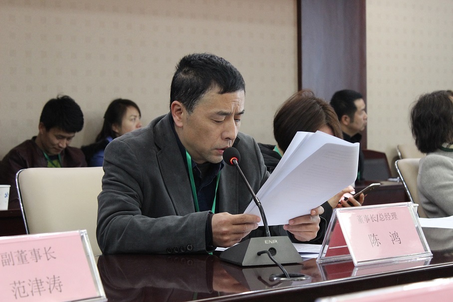(圖為董事長兼總經(jīng)理陳鴻作董事會工作報告)