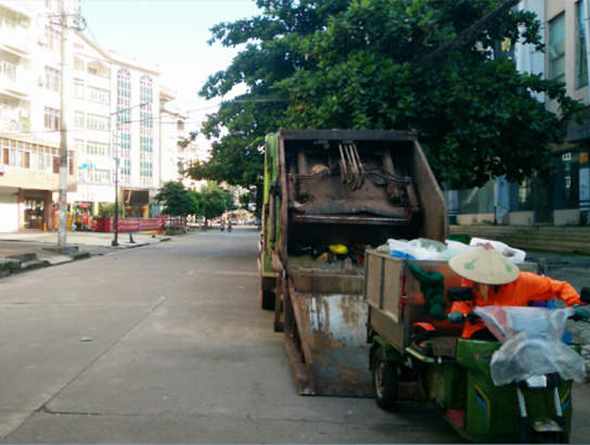 針對東興市國門城市的特點,公司采用機械作業(yè)與人工作業(yè)相結(jié)合的模式。人工作業(yè)方面,城區(qū)每天早上8點鐘前,環(huán)衛(wèi)工人完成大掃,輪班保潔,直到晚上11點鐘。機械作業(yè)方面,公司采用高壓清洗車對東興市城西區(qū)域路段進(jìn)行清洗作業(yè),采用小掃路車對市區(qū)小街巷進(jìn)行清洗作業(yè),全天候人工與電動三輪車巡回保潔,管理人員用電瓶車進(jìn)行巡檢督查。垃圾清運則采用壓縮式收集車巡回收集城區(qū)各路段垃圾,采用5臺勾臂車對城西各區(qū)域100多個垃圾箱中垃圾進(jìn)行轉(zhuǎn)運,垃圾壓縮車對全城的垃圾桶中垃圾進(jìn)行循環(huán)收集,保證全城垃圾不落地。新型模式下的環(huán)衛(wèi)作業(yè)有效地提升了東興市國門城市形象及環(huán)衛(wèi)作業(yè)管理水平,受到業(yè)主單位及主管單位好評。