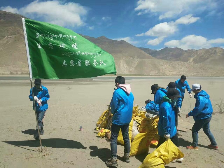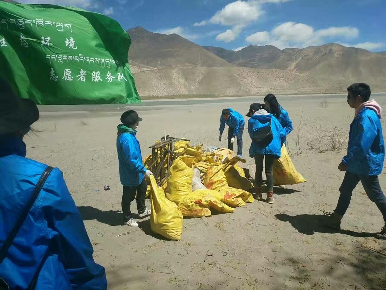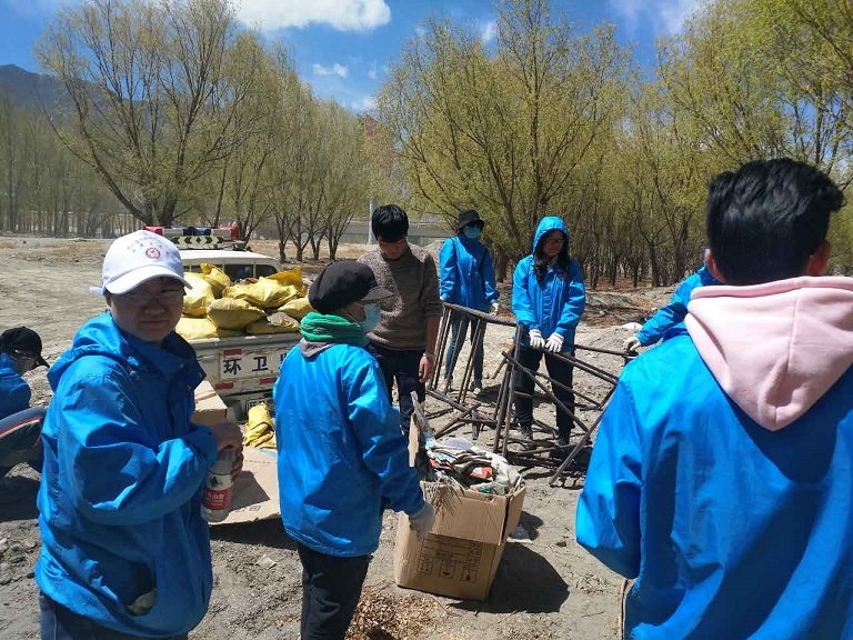 山南市團(tuán)委組織青年志愿者前往雅礱藏布江河畔清理河床垃圾——國策環(huán)保山南分公司協(xié)助垃圾清運(yùn)并處理。