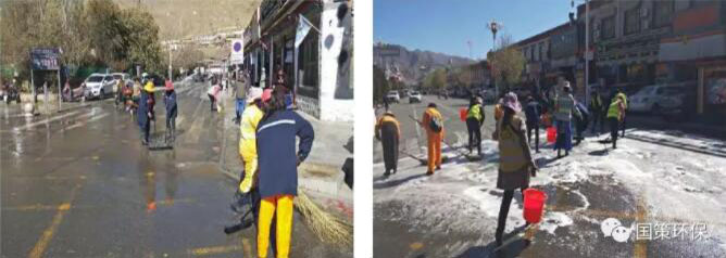 當(dāng)天11:00~17:00,我公司出動(dòng)大型灑水車(chē)2輛、人行道洗地車(chē)1輛、環(huán)衛(wèi)工人及管理人員共45人對(duì)扎寺廣場(chǎng)和珠峰西路(扎寺廣場(chǎng)至體育路路口)的路面進(jìn)行沖洗,共計(jì)出動(dòng)灑水車(chē)8車(chē)次,沖洗面積達(dá)20000平方米,耗資15000元。